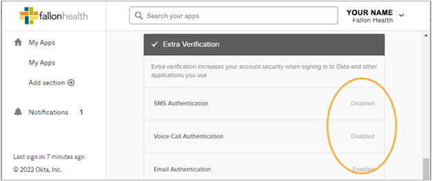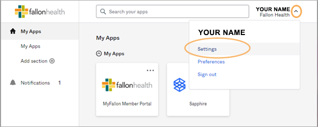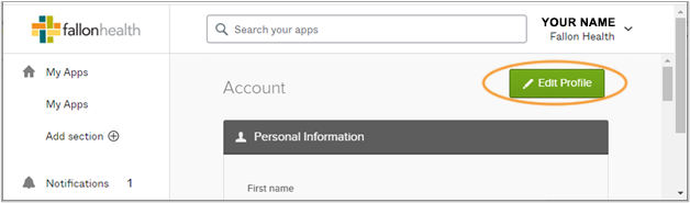- Using your MyFallon username and password, log into https://fallonhealth.okta.com/.