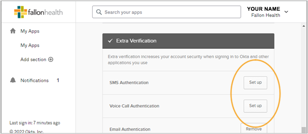 If the “SMS Authentication” and “Voice Call Authentication” options have “Set up” buttons next to them, you can skip